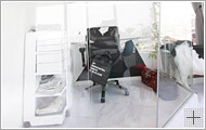 また、リビングと隣接していた洋室との間仕切りを取り除き、ガラス張りのオープンな空間を造りました。細部にもこだわり、壁面にエコカラットを貼り付け、デザイン性を高めるとともに、消臭効果等の機能性も付け加えました。