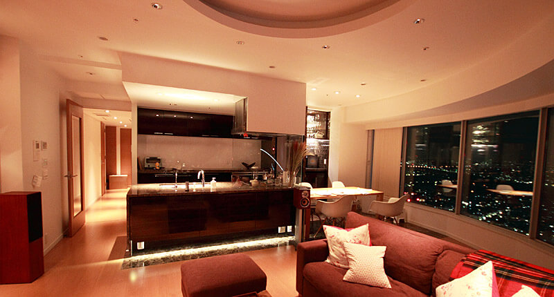リビング・ダイニングでは、天井造作工事を行い、また、ライティングにもこだわってLED間接照明やダウンライトを取り付け、落ち着いた雰囲気で格調高い印象を与えるお部屋に仕上げました。