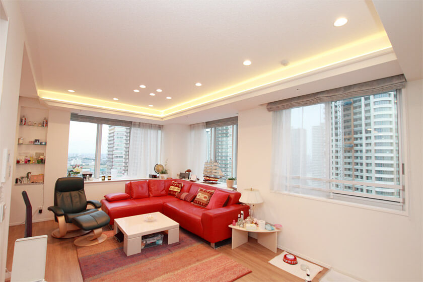 神奈川県川崎市にお住まいのO様邸では、リビング・ダイニングで天井部クロスの張替え工事や、それに併せてダウンライトの新設工事を行いました。