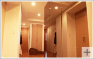 以前リビング等にてリフォーム工事をさせていただきましたN様邸にて追加工事をご発注いただき、玄関にてミラー新設工事を行いました。玄関の側面に大型のミラーを貼り、外出前の身支度に活用できるほか、ミラーへの映り込みによって空間を広く感じる効果もあります。